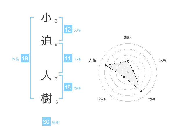 小迫 人樹さんを姓名の画数から五運を鑑定