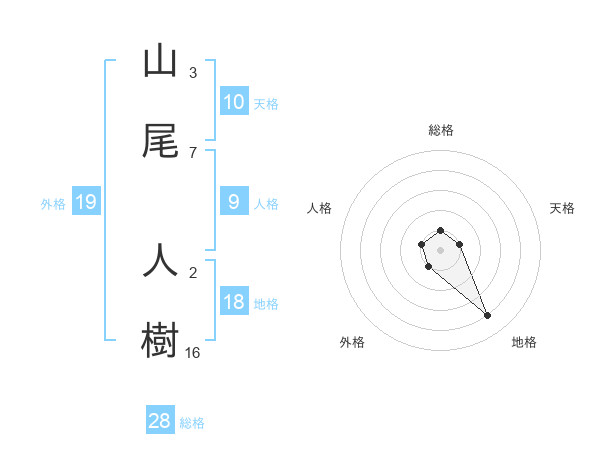 山尾 人樹さんの総格は28画の1点!