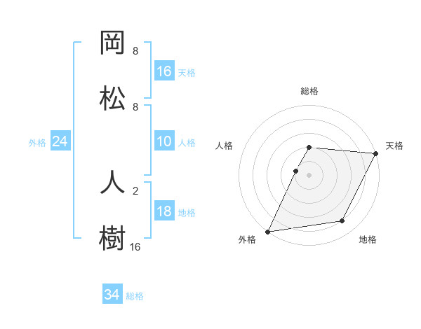 岡松 人樹さんの総格は34画の2点!