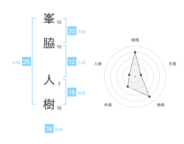 峯脇 人樹さんの総格は38画の4点!
