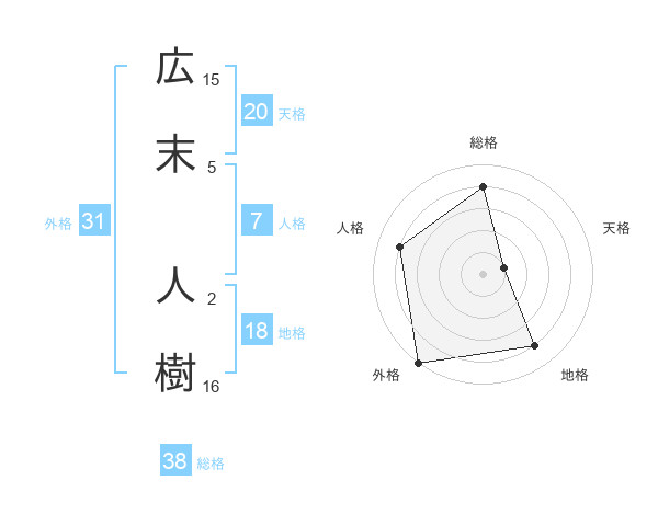 広末 人樹さんの総格は38画の4点!