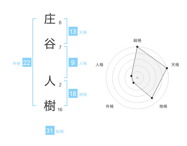 庄谷 人樹さんの総格は31画の5点!