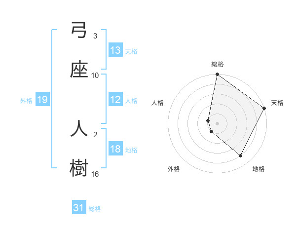 弓座 人樹さんの天格は13画の5点!