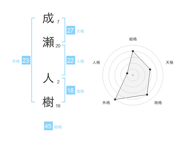 成瀬 人樹さんを姓名の画数から五運を鑑定