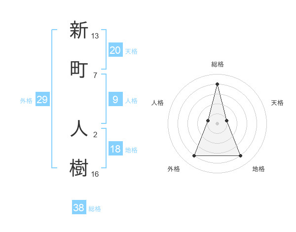 新町 人樹さんの総格は38画の4点!