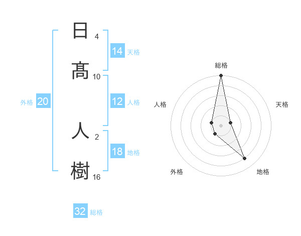 日髙 人樹さんの総格は32画の5点!