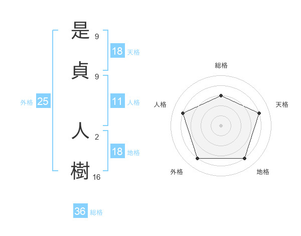 是貞 人樹さんの天格は18画の4点!