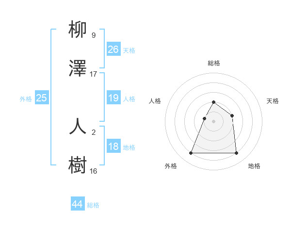 柳澤 人樹さんを姓名の画数から五運を鑑定