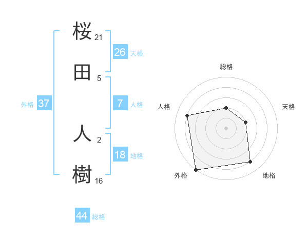 桜田 人樹さんを姓名の画数から五運を鑑定