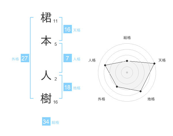 桾本 人樹さんの天格は16画の5点!