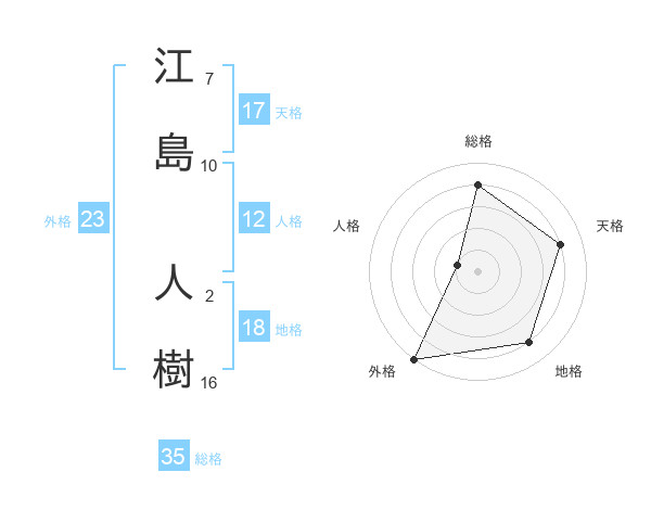 江島 人樹さんの総格は35画の4点!