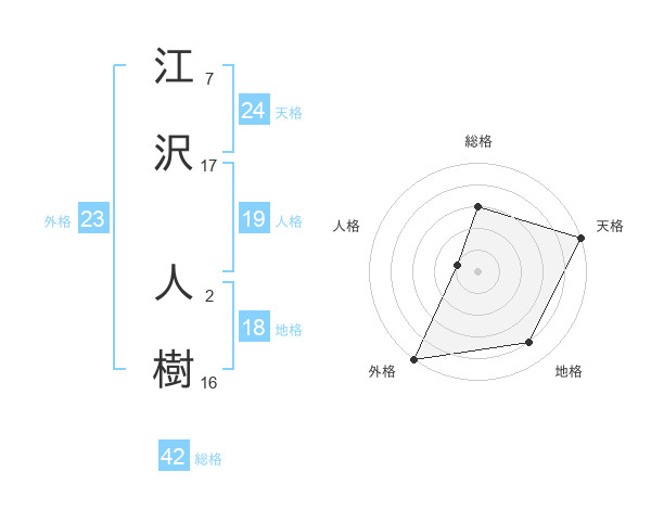 江沢 人樹さんの天格は24画の5点!