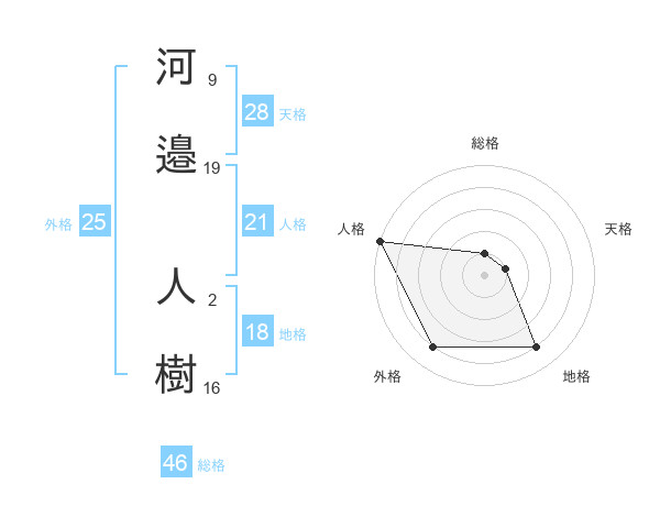 河邉 人樹さんを姓名の画数から五運を鑑定