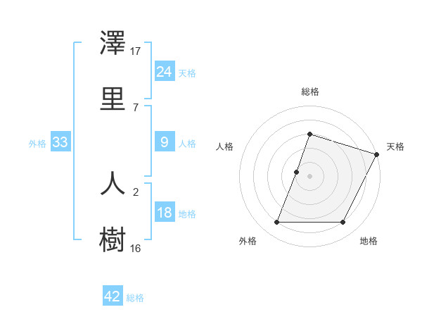 澤里 人樹さんを姓名の画数から五運を鑑定