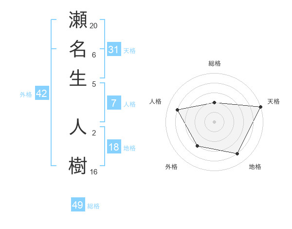 瀬名生 人樹さんの総格は49画の2点!