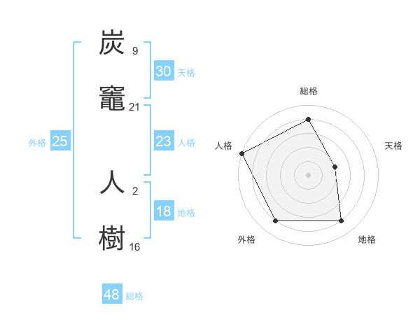 炭竈 人樹さんの総格は48画の4点!