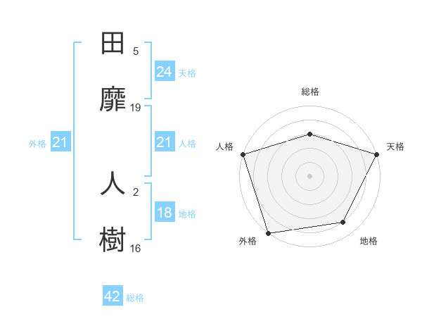 田靡 人樹さんを姓名の画数から五運を鑑定