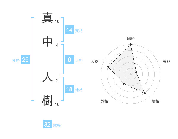 真中 人樹さんの総格は32画の5点!