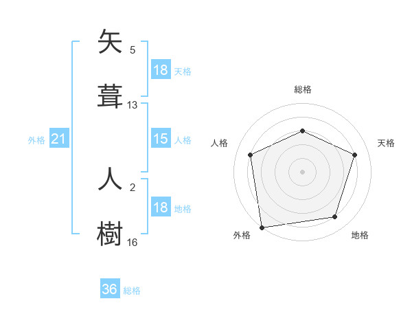 矢葺 人樹さんの外格は21画の5点!