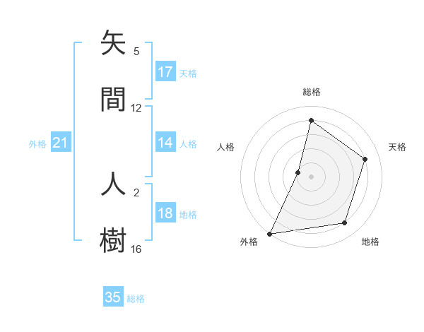 矢間 人樹さんを姓名の画数から五運を鑑定