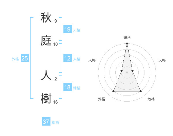 秋庭 人樹さんの総格は37画の5点!