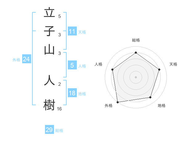 立子山 人樹さんを姓名の画数から五運を鑑定