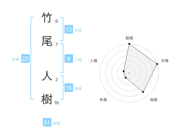 竹尾 人樹さんの総格は31画の5点!
