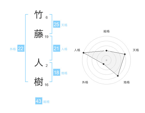 竹藤 人樹さんの外格は22画の1点!