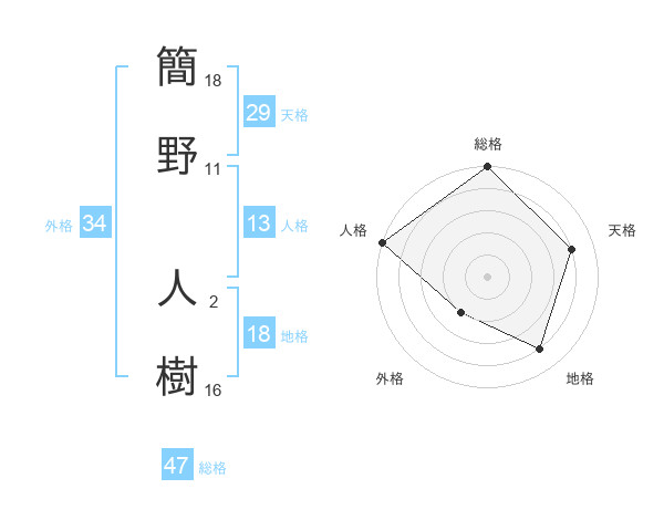 簡野 人樹さんを姓名の画数から五運を鑑定