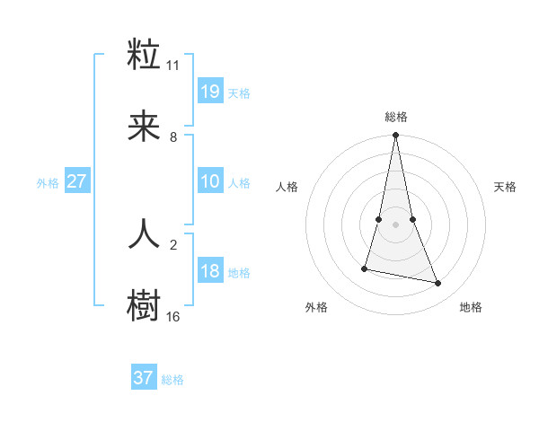 粒来 人樹さんの総格は37画の5点!