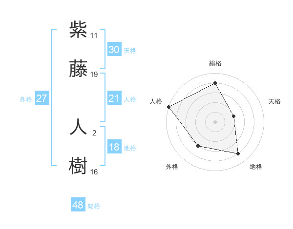 紫藤 人樹さんを姓名の画数から五運を鑑定