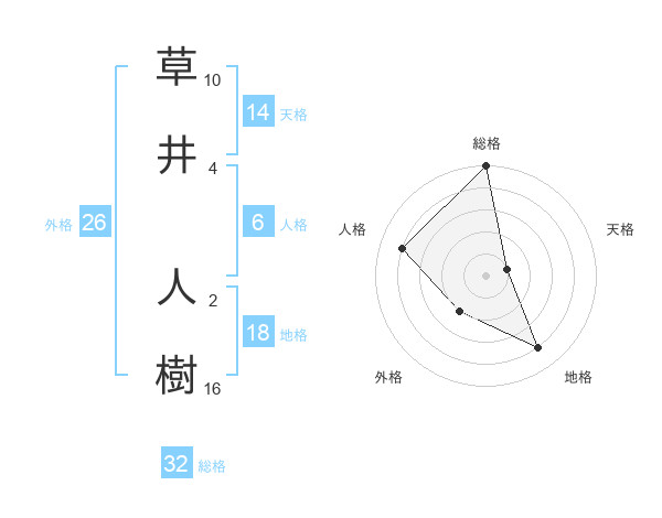草井 人樹さんの総格は32画の5点!