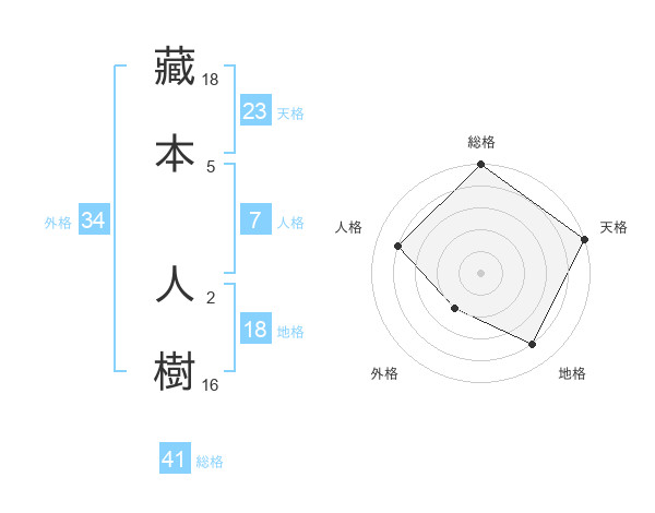藏本 人樹さんを姓名の画数から五運を鑑定
