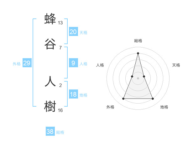 蜂谷 人樹さんの総格は38画の4点!