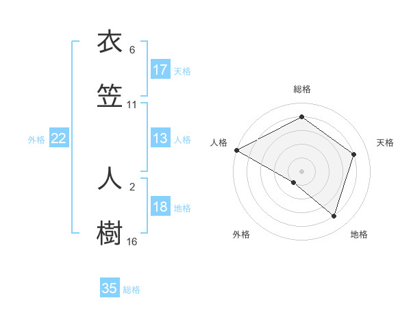 衣笠 人樹さんの総格は35画の4点!