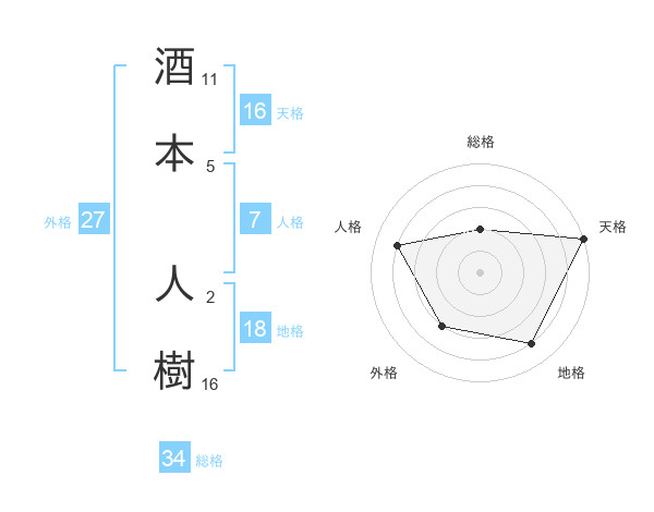 酒本 人樹さんの天格は16画の5点!