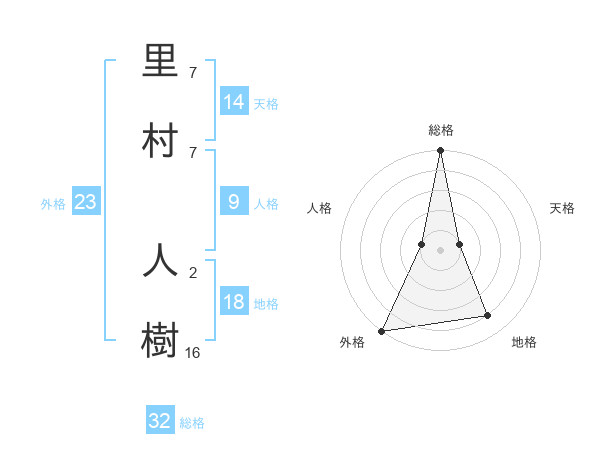 里村 人樹さんの総格は32画の5点!