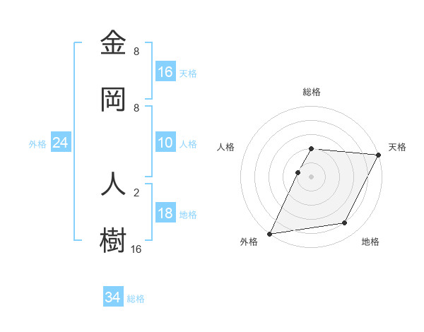 金岡 人樹さんを姓名の画数から五運を鑑定