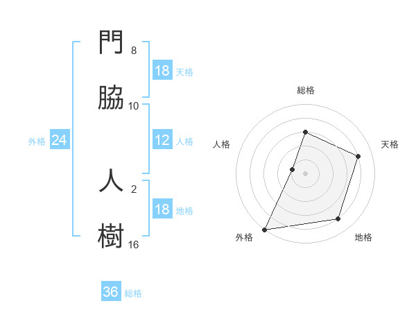 門脇 人樹さんを姓名の画数から五運を鑑定