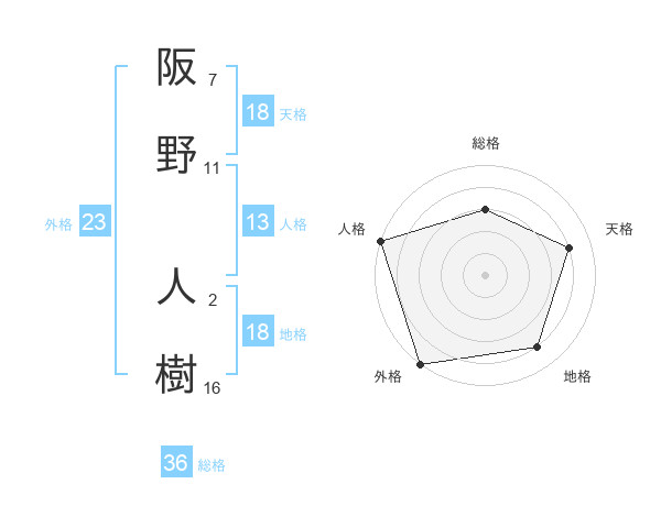阪野 人樹さんの外格は23画の5点!