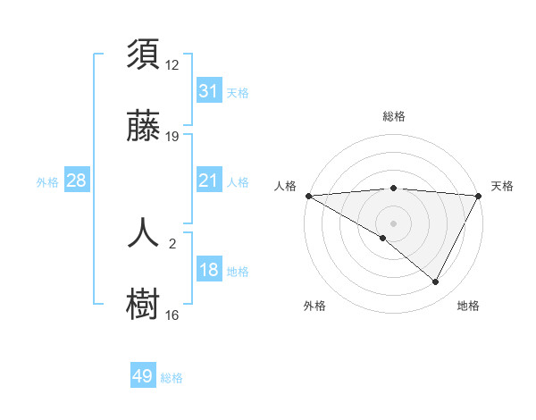 須藤 人樹さんの天格は31画の5点!