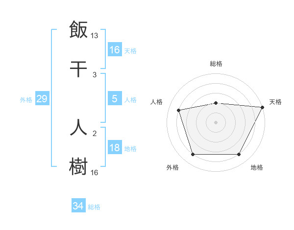 飯干 人樹さんの天格は16画の5点!