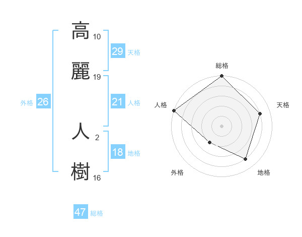 高麗 人樹さんを姓名の画数から五運を鑑定