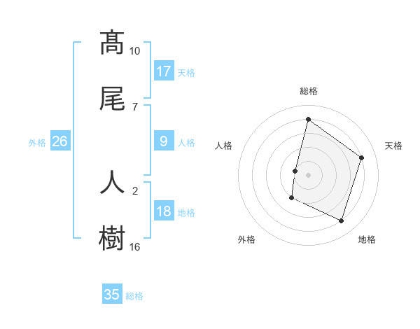 髙尾 人樹さんの総格は35画の4点!