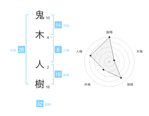 鬼木 人樹さんを姓名の画数から五運を鑑定