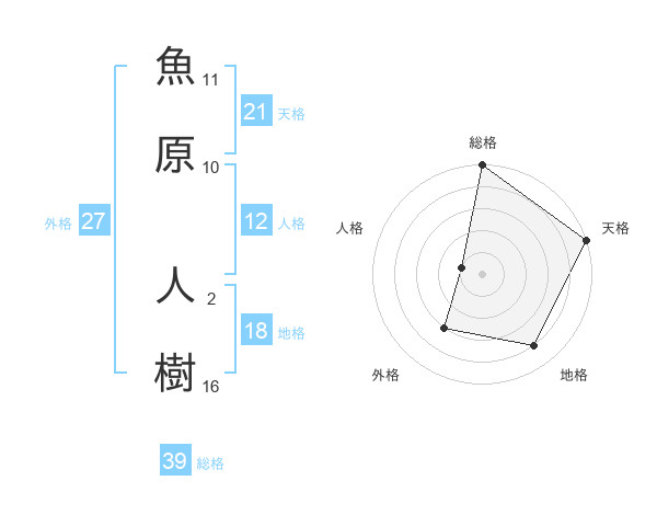 魚原 人樹さんの総格は39画の5点!