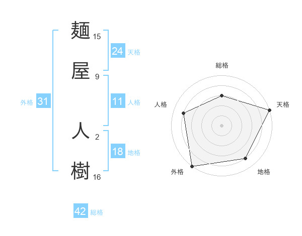 麺屋 人樹さんを姓名の画数から五運を鑑定