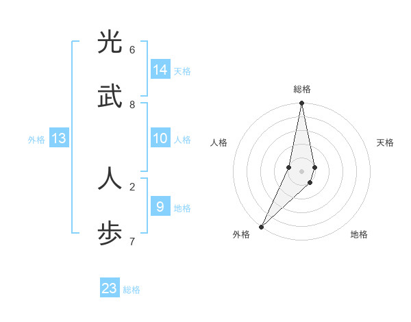 光武 人歩さんの総格は23画の5点!