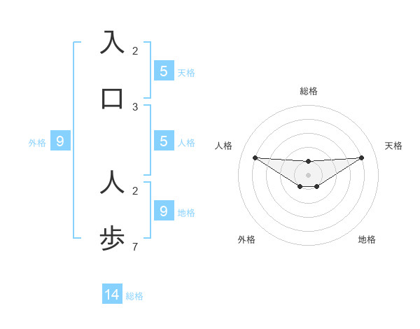 入口 人歩さんの総格は14画の1点!