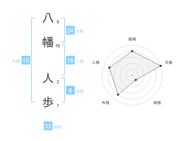 八幡 人歩さんを姓名の画数から五運を鑑定